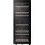 Электронное управление помогает быстро разобраться в том, как функционирует эта модель, и легко настроить все необходимые параметры. На дисплее отображаются данные, которые собирают датчики в камере. Лампочки, расположенные внутри, хорошо подсвечивают бутылки. Всего полок, на которых можно разместить коллекцию, в шкафу 8 шт. Пространство тщательно вентилируется, чтобы воздух не застаивался, не попадали посторонние запахи.