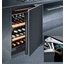 Встраиваемые холодильники для вина оснащаются специальной системой вентиляции: охлаждающая система у них находится в нижней части корпуса спереди. На такие устройства не навешивается мебельный фасад: дверца с затемненным стеклом остается на виду и открывается на достаточно широкий угол для свободного выдвижения деревянных полок.