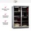 Ширина винного шкафа, как и другие их габариты, обязательно учитывается при выборе модели для домашнего или профессионального использования. Встраиваемые и отдельно стоящие модели выпускаются в самом широком ассортименте, так что разброс значений максимально велик. Неизменным спросом пользуются винные шкафы стандартной ширины — от 40 до 80 см, в современном и классическом стиле. Для встраиваемых шкафов наиболее удобной является ширина 60 см, позволяющая устанавливать их в кухонную тумбу или колонну. Вместимость их может быть самой различной и зависит в большей степени от высоты прибора. Маленькие винные шкафы с размещением на столешнице или даже с креплением к стене, рассчитанные на хранение от одной до десяти бутылок, могут иметь минимальную ширину от 13 см. На полках у них обычно помещается не более 5 бутылок, и используются они для охлаждения вина перед подачей. Большие винные шкафы с несколькими камерами и температурными зонами для длительного хранения и созревания разных сортов вина могут иметь ширину до 180 см, а максимальное значение этого параметра может составить 300 см. Как правило, это отдельно стоящие модели в деревянном корпусе с камерами side-by-side.