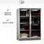 Производители предлагают винные шкафы, оснащенные одной, двумя, тремя и четырьмя камерами, которые могут располагаться как друг под другом, так бок и бок. Самые популярные — однокамерные модели, ассортимент которых особенно широк, но втором месте — двухкамерные. Над заметить, что количество камер не зависит напрямую от габаритов изделия: например, однокамерные модели увеличенных габаритов — далеко не редкость. Их высота может варьироваться в пределах от 14 см до 219 см, а ширина — от 13 см до 150 см.