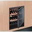 Встраиваемые холодильники для вина оснащаются специальной системой вентиляции: охлаждающая система у них находится в нижней части корпуса спереди. На такие устройства не навешивается мебельный фасад: дверца с затемненным стеклом остается на виду и открывается на достаточно широкий угол для свободного выдвижения деревянных полок.