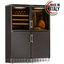 Современные винные шкафы всех типов, в том числе компрессорные, темоэлектрические и абсорбционные, оснащаются электронной системой управления — кнопочной или сенсорной. Панель управления, с помощью которой производится регулировка параметров работы, может размещаться внутри винного шкафа за дверцей или снаружи в верхней части корпуса. Второй вариант более удобен, поскольку для изменения параметров не нужно открывать дверцу. Кроме того, такое расположение панели управления позволяет поддерживать более стабильную температуру в камере. Однако для больших винных шкафов в классическом стиле из ценных пород дерева предпочтительнее скрытая панель управления, которая не портит их внешний вид.