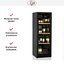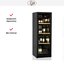Отдельностоящий винный шкаф IP JGL 166-6 AD CF выполнен в классическом черном цвете и отлично впишется в любой стиль. Прибор разделен на две температурные зоны — в верхней можно установить от +5 до + 10 градусов, а в нижней от + 10 до +18. Внутри расположены четыре деревянные полки, этот материал считается самым подходящим для подобным устройств. Вместимость составляет 154 бутылки типа бордо по 0.75 л, вы можете хранить напитки, требующие разных условий.