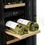 Электронное управление помогает быстро разобраться в том, как функционирует эта модель, и легко настроить все необходимые параметры. На дисплее отображаются данные, которые собирают датчики в камере. Лампочки, расположенные внутри, хорошо подсвечивают бутылки. Всего полок, на которых можно разместить коллекцию, в шкафу 4 шт.