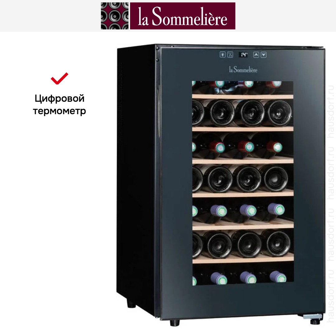 Гибридный монотемпературный винный шкаф LaSommeliere, серии Service. Благодаря безвентиляторной технологии, современному дизайну и удобной панели управления- шкаф LS28CB идеально интегрируется в интерьер вашего дома. LS28CB оснащен