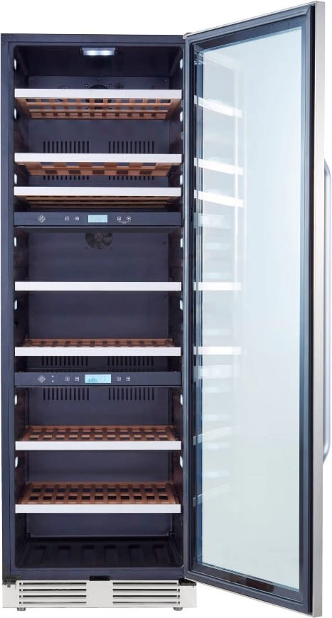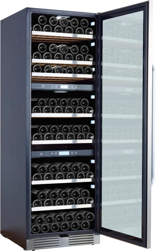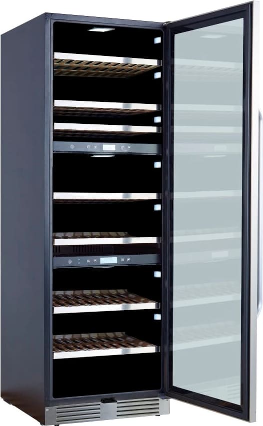 Двухтемпературные предназначены для хранения в разных условиях красного и белого вина. Трехтемпературные — для белого, красного, игристого. Мульти — система хранения из более чем трех зон с разным климатом.