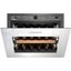 Встраиваемые холодильники для вина оснащаются специальной системой вентиляции: охлаждающая система у них находится в нижней части корпуса спереди. На такие устройства не навешивается мебельный фасад: дверца с затемненным стеклом остается на виду и открывается на достаточно широкий угол для свободного выдвижения деревянных полок.