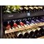 Полки в винных шкафах позволяют размещать бутылки для хранения в горизонтальном положении. Это необходимо, чтобы пробка постоянно смачивалась жидкостью и не пересыхала. Плотно закрытая пробка гарантирует, что внутрь бутылки не проникнет наружный воздух. Кислород, содержащийся в воздухе, может стать причиной ухудшения вкуса вина и даже его скисания. Кроме того, горизонтальное положение позволяет лучше оценить количество осадка. Материал изготовления полок выбирается, исходя из требований, предъявляемых к содержанию коллекции вин. Одним из основных требования является отсутствие или максимальное сокращение вибрации и хорошая фиксация бутылок на месте хранения. Даже если полка выдвигается, бутылки должны оставаться на своем месте. Второе требование исключает применение стеклянных полок, как в обычном холодильнике: на них почти невозможно зафиксировать бутылки.