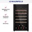 Винный шкаф Maunfeld MFWC-124S56 отличается строгим чёрным оформлением и лаконичными линиями, которые легко впишутся в интерьер кухни, бара или гостиной. Корпус из металла и аккуратно вмонтированная скрытая ручка создают впечатление монолитной конструкции. Дверь со стеклопакетом в тонированном варианте защищена от УФ-излучения, поэтому бутылки не боятся световых перепадов. Правосторонний дверной упор и компактные габариты 85.5×48×57.5 см позволяют расположить технику даже в условиях ограниченного пространства.