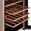 Ширина винного шкафа, как и другие их габариты, обязательно учитывается при выборе модели для домашнего или профессионального использования. Встраиваемые и отдельно стоящие модели выпускаются в самом широком ассортименте, так что разброс значений максимально велик. Неизменным спросом пользуются винные шкафы стандартной ширины — от 40 до 80 см, в современном и классическом стиле. Для встраиваемых шкафов наиболее удобной является ширина 60 см, позволяющая устанавливать их в кухонную тумбу или колонну. Вместимость их может быть самой различной и зависит в большей степени от высоты прибора. Маленькие винные шкафы с размещением на столешнице или даже с креплением к стене, рассчитанные на хранение от одной до десяти бутылок, могут иметь минимальную ширину от 13 см. На полках у них обычно помещается не более 5 бутылок, и используются они для охлаждения вина перед подачей. Большие винные шкафы с несколькими камерами и температурными зонами для длительного хранения и созревания разных сортов вина могут иметь ширину до 180 см, а максимальное значение этого параметра может составить 300 см. Как правило, это отдельно стоящие модели в деревянном корпусе с камерами side-by-side.