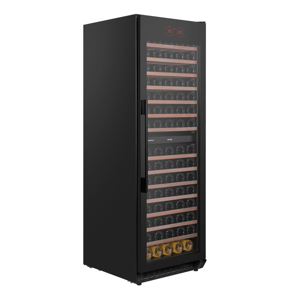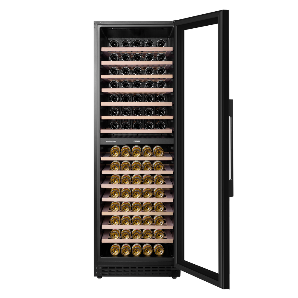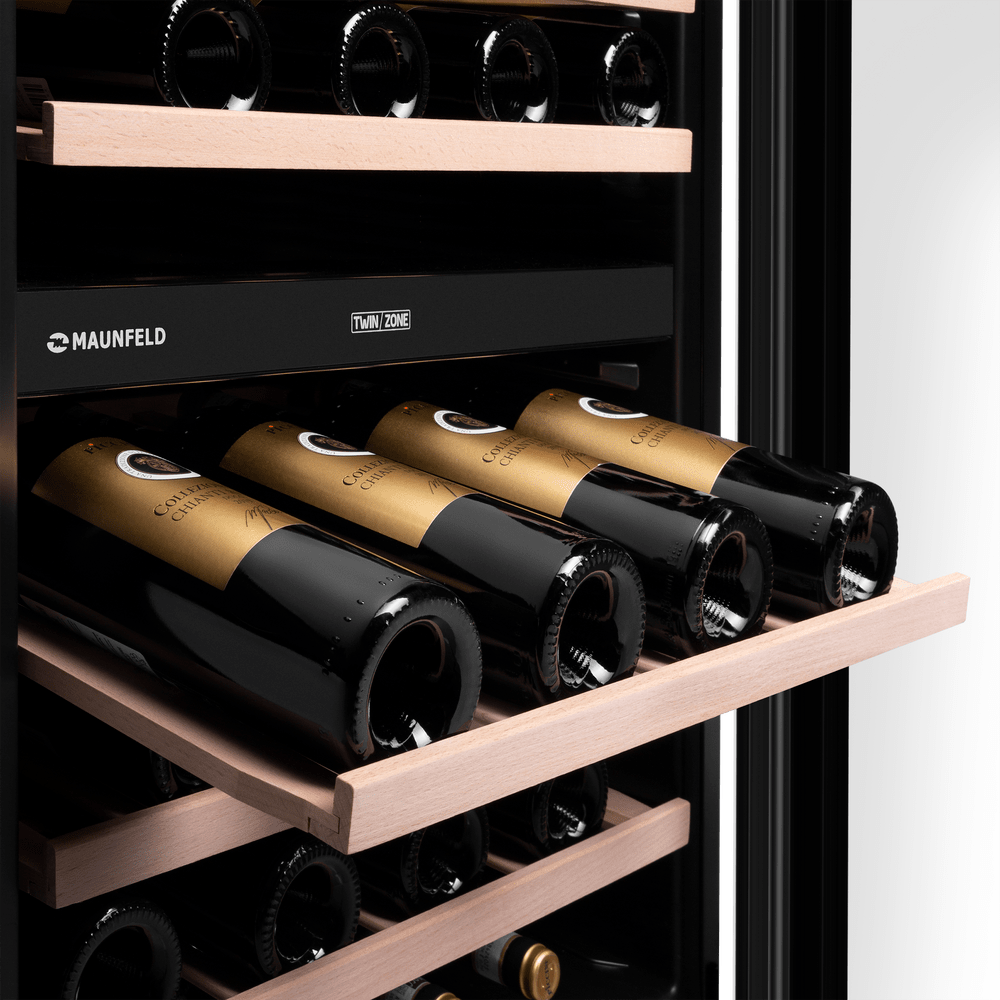 Винный холодильник Maunfeld MBWC-415D171 имеет две температурные зоны, в которых одновременно можно хранить разные сорта алкоголя и выставлять разные сочетания настроек. Он встраивается в нишу, что удобно, если у вас ограничен метраж помещения. Количество бутылок, которое можно разместить с учетом полной комплектации и из расчета объема бутылки 0,75 л, — 171 шт.