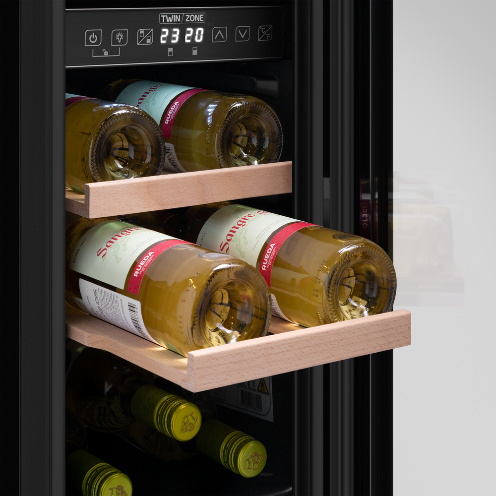Большинство современных винных шкафов имеет электронное управление, они могут оснащаться обычными цифровыми дисплеями, на которых будет отображаться минимум информации — о включении, температуре в камере и возникших неисправностях. Однако в большинстве моделей используются текстовые сенсорные дисплеи из нескольких сегментов. С помощью кнопок сенсорного меню на этих дисплеях можно отображать и регулировать температуру в каждой зоне отдельно с точностью до градуса, выбирать уровень влажности, задавать дополнительные опции — отключение сигнализации, включение вентиляции и внутреннего освещения, активацию защиты от детей, тип отображения температуры ºF/ºC. Здесь же будут появляться коды ошибок, выданные системой обнаружения неисправностей.