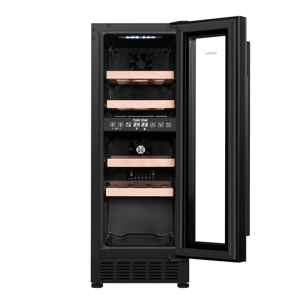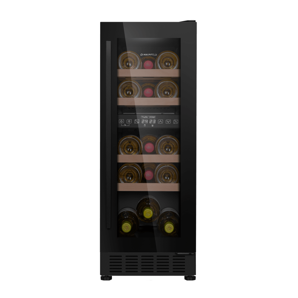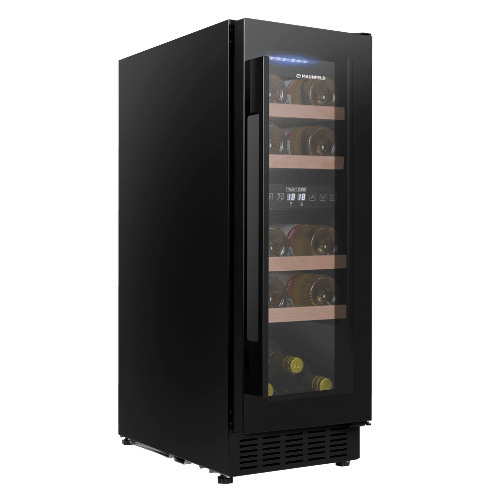 Винный холодильник Maunfeld MBWC-56D17 имеет две температурные зоны, в которых одновременно можно хранить разные сорта алкоголя и выставлять разные сочетания настроек. Он встраивается в нишу, что удобно, если у вас ограничен метраж помещения. Благодаря компактным размерам данная модель — отличный выбор для офиса, гостиничного номера. Количество бутылок, которое можно разместить с учетом полной комплектации и из расчета объема бутылки 0,75 л, — 17 шт.
