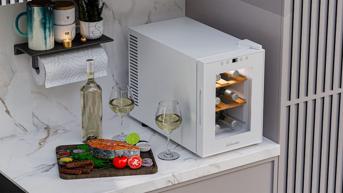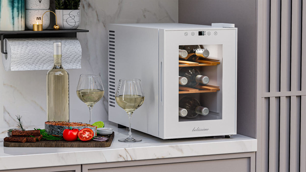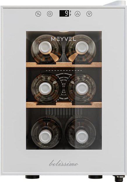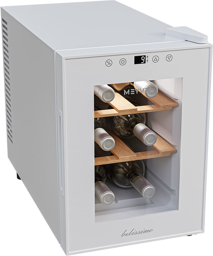 Винный холодильник Meyvel MV06-TWF1-Next имеет одну температурную зону, в которой можно разместить бутылки и единовременно выставить только одну комбинацию настроек. Он устанавливается отдельно, что удобно, если у вас есть специальное помещение — кладовая, погреб и т.д. Благодаря компактным размерам данная модель — отличный выбор для офиса, гостиничного номера. Количество бутылок, которое можно разместить с учетом полной комплектации и из расчета объема бутылки 0,75 л, — 6 шт.