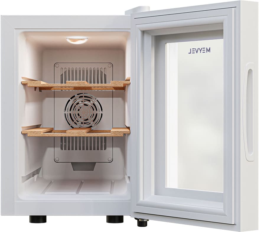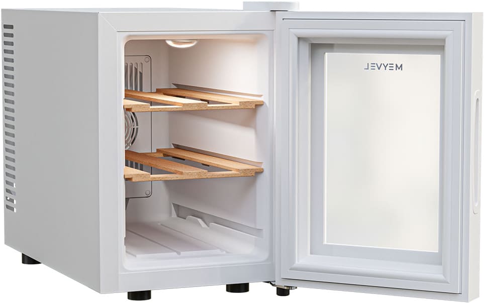 Одна камера в технике такого типа встречается чаще всего, потому что в ней просто расположить все функциональные детали, и в итоге прибор действительно похож на обычный шкаф. Охлажденный воздух поступает внутрь благодаря термоэлектрическому элементу. Размораживать — удалять иней со стенок и поддерживать тем самым оптимальные условия — необходимо вручную. Общий диапазон температур, которые можно установить: 8-18 градусов. Средняя влажность воздуха (в процентах), которая поддерживается, чтобы пробки в бутылках не пересыхали: 60-80.