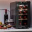 Современные винные шкафы всех типов, в том числе компрессорные, темоэлектрические и абсорбционные, оснащаются электронной системой управления — кнопочной или сенсорной. Панель управления, с помощью которой производится регулировка параметров работы, может размещаться внутри винного шкафа за дверцей или снаружи в верхней части корпуса. Второй вариант более удобен, поскольку для изменения параметров не нужно открывать дверцу. Кроме того, такое расположение панели управления позволяет поддерживать более стабильную температуру в камере. Однако для больших винных шкафов в классическом стиле из ценных пород дерева предпочтительнее скрытая панель управления, которая не портит их внешний вид.