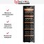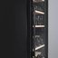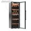 Внешний дизайн подчёркнут матовой стальной обшивкой и чёрной рамкой дверцы, что делает прибор солидным и нейтральным. Трёхкамерное стекло с тонировкой защищает содержимое от УФ-лучей и одновременно сохраняет визуальную лёгкость фасада. Дверной проём справа и габариты 154,6×49×57,5 см позволяют комфортно разместить агрегат в свободном пространстве или в нише близких размеров. Белая демонстрационная подсветка создаёт презентабельный вид бутылок и облегчает сортировку, не влияя на микроклимат внутри.