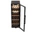 Внутри установлены пять выдвижных полок из массива бука, каждая рассчитана на бережное положение тары и лёгкое извлечение. Полки выдвижного типа удобны при выкладке и при проведении инвентаризации коллекции, а специальная полка для нестандартных бутылок увеличивает гибкость размещения. Возможность установки некоторой тары в вертикальном положении даёт дополнительное место и упрощает хранение бутылок с нестандартной формой. Дополнительная опция полки для фужеров обеспечивает аккуратное хранение бокалов, при этом её монтаж не нарушит основную компоновку.