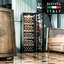 Производители предлагают винные шкафы, оснащенные одной, двумя, тремя и четырьмя камерами, которые могут располагаться как друг под другом, так бок и бок. Самые популярные — однокамерные модели, ассортимент которых особенно широк, но втором месте — двухкамерные. Над заметить, что количество камер не зависит напрямую от габаритов изделия: например, однокамерные модели увеличенных габаритов — далеко не редкость. Их высота может варьироваться в пределах от 14 см до 219 см, а ширина — от 13 см до 150 см.