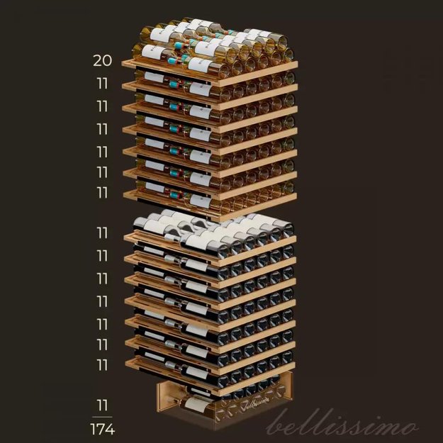 Высота винных шкафов — как встраиваемых, так и отдельно стоящих — варьируется в самых широких пределах. Все винные холодильники можно разделить на несколько категорий по габаритам и вместимости. Модели большого размера позволяют хранить более 70 стандартных бутылок емкостью 0,75 литра в одной или нескольких температурных зонах. Высота подобных отдельно стоящих устройств составляет не менее 140 см, а максимальное ее значение может достигать 180 см. Самые же большие модели, вмещающие порядка 250-300 бутылок, могут быть еще выше — до 200 и даже 220 см. Увеличение вместимости обычно достигается за счет ширины, а не высоты, так как слишком высокие холодильники менее удобны в использовании. Компактные винные холодильники для размещения под столешницей имеют максимальную высоту около 82 см (реже 85 см), чтобы свободно устанавливаться на выбранном месте. Минимальное значение высоты в этом случае может составить около 50 см.
