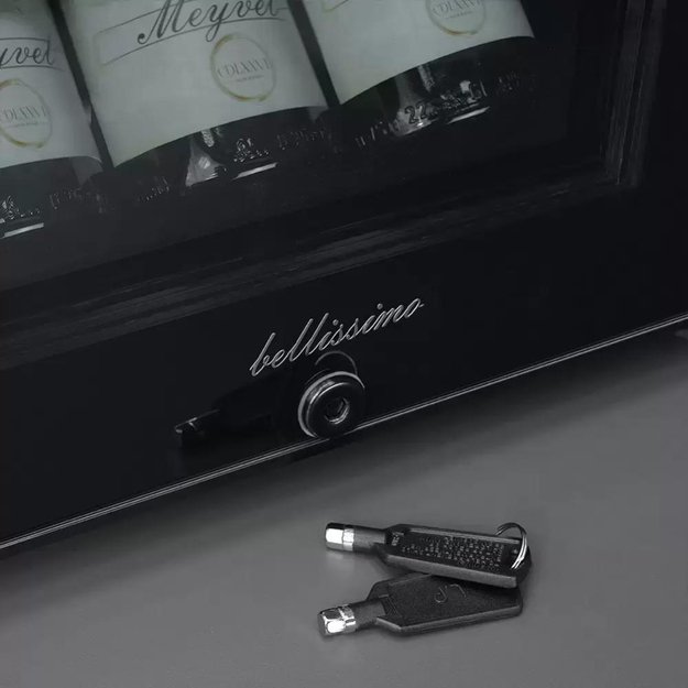 Замок в винных шкафах предназначается для предотвращения нежелательного доступа — в частности, для защиты винной коллекции от детей. Механический замок может располагаться на дверце, как у обычного шкафа или сейфа. Если же дверца холодильника полностью изготовлена из стекла, замок может находиться на цокольной решетке. Такие замки комплектуются набором ключей. Иногда на дверце устанавливаются электронные замки, открыть которые можно при помощи комбинации кнопок или при помощи чипа. Выбрать шкаф с замком можно как для установки в баре или кафе, так и для домашнего использования.