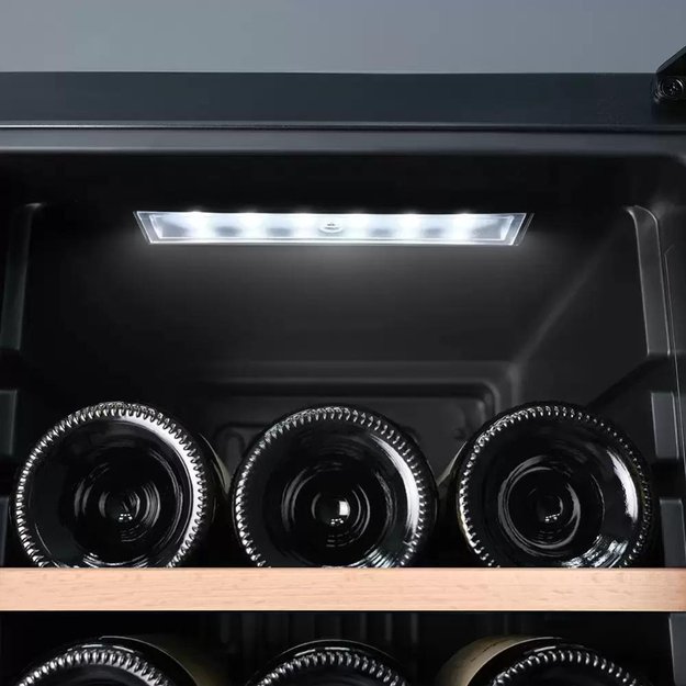 Внутреннее освещение в винных шкафах обеспечивает оптимальный обзор вин, находящихся на полках, и гарантирует при этом их полную сохранность. Известно, что любое ультрафиолетовое излучение негативно отражается на качестве вина: именно поэтому стекло в дверце снабжается УФ-фильтрами и защитной пленкой. Подсветка должна удовлетворять этим же требованиям, так что в большинстве устройств в камерах устанавливаются светодиодные светильники, которые, кроме того, потребляют очень малое количество электроэнергии и отличаются долговечностью. Во время работы LED-лампы не нагреваются, так что температура в камере также остается неизменной. Многие шкафы оснащаются функциями плавного включения и выключения освещения и изменения его яркости, а также функцией автоматического отключения через 10-15 секунд после закрытия дверцы.