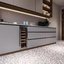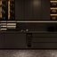 Встраиваемые холодильники для вина оснащаются специальной системой вентиляции: охлаждающая система у них находится в нижней части корпуса спереди. На такие устройства не навешивается мебельный фасад: дверца с затемненным стеклом остается на виду и открывается на достаточно широкий угол для свободного выдвижения деревянных полок.