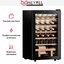 Стеклянная дверь — дополнительный изящный штрих к общему дизайну модели. Специальное покрытие защищает вино от влияния ультрафиолетовых лучей, которые проникают, если шкаф находится в солнечной комнате. Хранение становится еще безопаснее и герметичнее благодаря нескольким слоям стекол. Цвет корпуса — черный.
