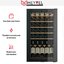 Внутреннее пространство организовано шести полками из массива бука, две из которых выдвижные и демонстрационные, для удобной выкладки и быстрой выборки бутылок. Вместимость в 30 стандартных бутылок при общем объеме 100 литров делает прибор пригодным для квартиры, кухни, небольшого бара или офиса. Регулируемые ножки компенсируют неровности пола и упрощают установку на разных поверхностях.