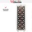 Производители предлагают винные шкафы, оснащенные одной, двумя, тремя и четырьмя камерами, которые могут располагаться как друг под другом, так бок и бок. Самые популярные — однокамерные модели, ассортимент которых особенно широк, но втором месте — двухкамерные. Над заметить, что количество камер не зависит напрямую от габаритов изделия: например, однокамерные модели увеличенных габаритов — далеко не редкость. Их высота может варьироваться в пределах от 14 см до 219 см, а ширина — от 13 см до 150 см.