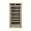 Стеклянная дверь — дополнительный изящный штрих к общему дизайну модели. Специальное покрытие защищает вино от влияния ультрафиолетовых лучей, которые проникают, если шкаф находится в солнечной комнате. Хранение становится еще безопаснее и герметичнее благодаря нескольким слоям стекол. Цвет корпуса — северный дуб.