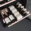 Полки в винных шкафах позволяют размещать бутылки для хранения в горизонтальном положении. Это необходимо, чтобы пробка постоянно смачивалась жидкостью и не пересыхала. Плотно закрытая пробка гарантирует, что внутрь бутылки не проникнет наружный воздух. Кислород, содержащийся в воздухе, может стать причиной ухудшения вкуса вина и даже его скисания. Кроме того, горизонтальное положение позволяет лучше оценить количество осадка. Материал изготовления полок выбирается, исходя из требований, предъявляемых к содержанию коллекции вин. Одним из основных требования является отсутствие или максимальное сокращение вибрации и хорошая фиксация бутылок на месте хранения. Даже если полка выдвигается, бутылки должны оставаться на своем месте. Второе требование исключает применение стеклянных полок, как в обычном холодильнике: на них почти невозможно зафиксировать бутылки.