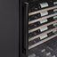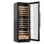Электронное управление помогает быстро разобраться в том, как функционирует эта модель, и легко настроить все необходимые параметры. На дисплее отображаются данные, которые собирают датчики в камере. Лампочки, расположенные внутри, хорошо подсвечивают бутылки. Всего полок, на которых можно разместить коллекцию, в шкафу 14 шт.