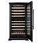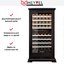 Электронное управление помогает быстро разобраться в том, как функционирует эта модель, и легко настроить все необходимые параметры. На дисплее отображаются данные, которые собирают датчики в камере. Лампочки, расположенные внутри, хорошо подсвечивают бутылки. Всего полок, на которых можно разместить коллекцию, в шкафу 9 шт.