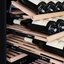 Встраиваемые холодильники для вина оснащаются специальной системой вентиляции: охлаждающая система у них находится в нижней части корпуса спереди. На такие устройства не навешивается мебельный фасад: дверца с затемненным стеклом остается на виду и открывается на достаточно широкий угол для свободного выдвижения деревянных полок.