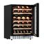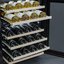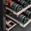 Внутреннее пространство рассчитано на 46 бутылок 0,75 л и организовано шестью полками из массива бука. Комбинация выкатных и мини‑полок облегчает доступ к отдельным позициям, а деревянные ламели гасят вибрации и минимизируют контакт бутылок со скользящими поверхностями. Динамическое компрессорное охлаждение в паре с автоматической разморозкой поддерживает постоянную влажность 60-80%, что важно для сохранения пробок и равномерного старения напитка.
