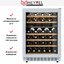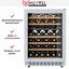 Две зоны с независимой настройкой температуры дают свободу для хранения разнотипных вин. Верхняя зона регулируется от 5 до 12 °C, нижняя — от 12 до 20 °C, общий диапазон 5-20 °C. Сенсорное управление и цифровой дисплей позволяют точно задать нужный градус, а электронный термостат удерживает стабильные условия для зрелых и молодых бутылок.
