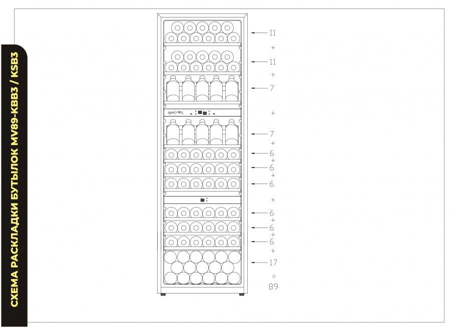 Стандартная вместительность рассчитывается по количеству бутылок «Бордо» 0,75 л. Это число также показывает максимальную загрузку при полной комплектации (полок, ящиков и других элементов).