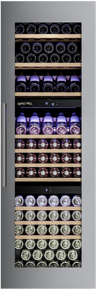 Винный шкаф Meyvel MV89-KSB3 обеспечивает бережное и правильное хранение вина. Для этого предусмотрены три температурные зоны, которые позволяют одновременно размещать напитки с различными настройками для дальнейшего содержания. Бутылки можно разместить на деревянных полках, которые отличаются высоким качеством и надежностью. Дверца представлена со стеклопакетом. Защита от ультрафиолетового излучения — еще одно преимущество изделия. Все необходимые параметры работы настраиваются индивидуально для каждой зоны, что удобно для пользователя. На дисплее показывается вся необходимая информация. Подсветка голубого цвета смотрится стильно и современно в любом интерьерном решении. Винный шкаф Мейвел MV89-KSB3 встраивается в мебельный гарнитур, поэтому гармонично впишется в любой дизайн и конструкцию помещения.