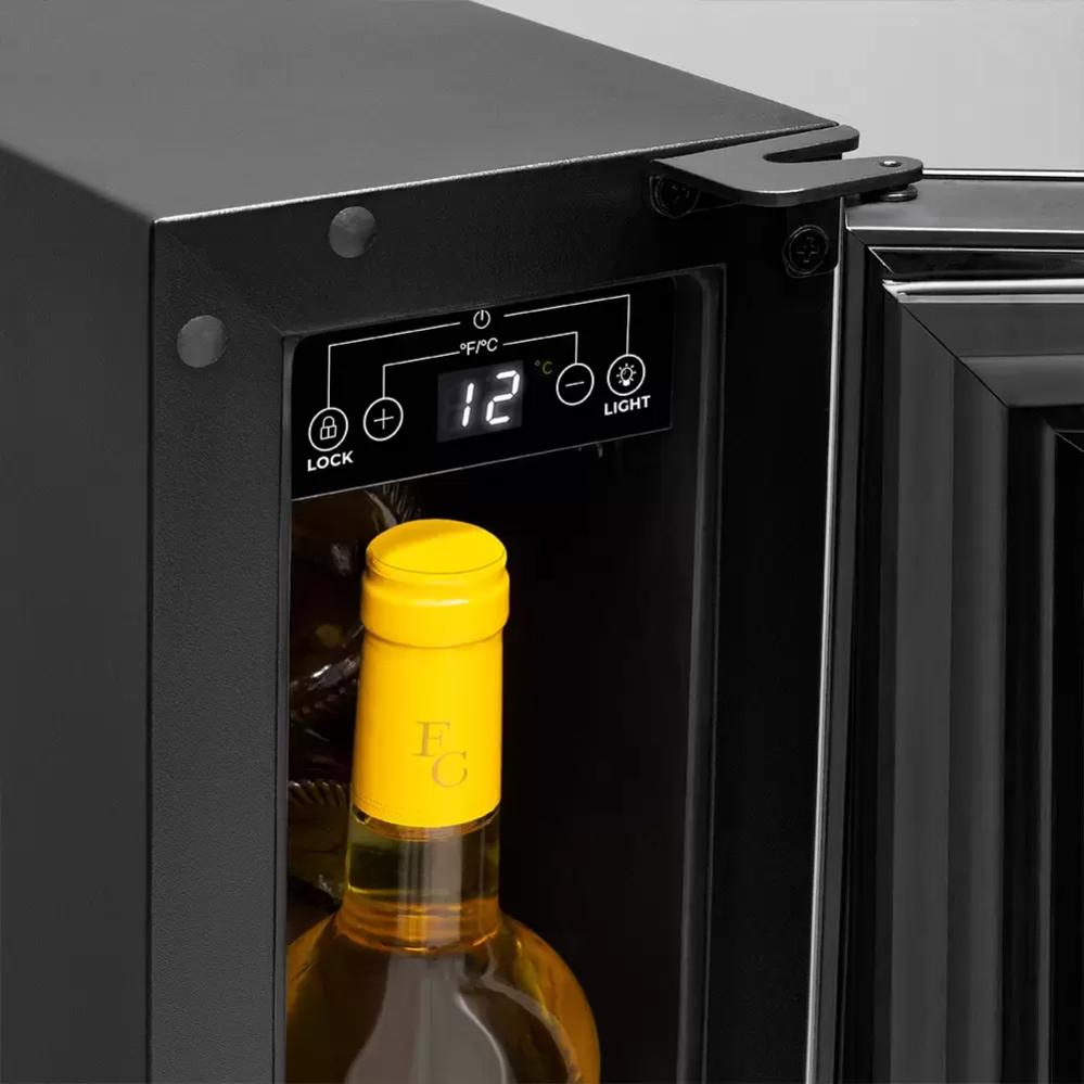 Большинство современных винных шкафов имеет электронное управление, они могут оснащаться обычными цифровыми дисплеями, на которых будет отображаться минимум информации — о включении, температуре в камере и возникших неисправностях. Однако в большинстве моделей используются текстовые сенсорные дисплеи из нескольких сегментов. С помощью кнопок сенсорного меню на этих дисплеях можно отображать и регулировать температуру в каждой зоне отдельно с точностью до градуса, выбирать уровень влажности, задавать дополнительные опции — отключение сигнализации, включение вентиляции и внутреннего освещения, активацию защиты от детей, тип отображения температуры ºF/ºC. Здесь же будут появляться коды ошибок, выданные системой обнаружения неисправностей.