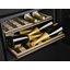 Ширина винного шкафа, как и другие их габариты, обязательно учитывается при выборе модели для домашнего или профессионального использования. Встраиваемые и отдельно стоящие модели выпускаются в самом широком ассортименте, так что разброс значений максимально велик. Неизменным спросом пользуются винные шкафы стандартной ширины — от 40 до 80 см, в современном и классическом стиле. Для встраиваемых шкафов наиболее удобной является ширина 60 см, позволяющая устанавливать их в кухонную тумбу или колонну. Вместимость их может быть самой различной и зависит в большей степени от высоты прибора. Маленькие винные шкафы с размещением на столешнице или даже с креплением к стене, рассчитанные на хранение от одной до десяти бутылок, могут иметь минимальную ширину от 13 см. На полках у них обычно помещается не более 5 бутылок, и используются они для охлаждения вина перед подачей. Большие винные шкафы с несколькими камерами и температурными зонами для длительного хранения и созревания разных сортов вина могут иметь ширину до 180 см, а максимальное значение этого параметра может составить 300 см. Как правило, это отдельно стоящие модели в деревянном корпусе с камерами side-by-side.