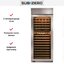 Ширина винного шкафа, как и другие их габариты, обязательно учитывается при выборе модели для домашнего или профессионального использования. Встраиваемые и отдельно стоящие модели выпускаются в самом широком ассортименте, так что разброс значений максимально велик. Неизменным спросом пользуются винные шкафы стандартной ширины — от 40 до 80 см, в современном и классическом стиле. Для встраиваемых шкафов наиболее удобной является ширина 60 см, позволяющая устанавливать их в кухонную тумбу или колонну. Вместимость их может быть самой различной и зависит в большей степени от высоты прибора. Маленькие винные шкафы с размещением на столешнице или даже с креплением к стене, рассчитанные на хранение от одной до десяти бутылок, могут иметь минимальную ширину от 13 см. На полках у них обычно помещается не более 5 бутылок, и используются они для охлаждения вина перед подачей. Большие винные шкафы с несколькими камерами и температурными зонами для длительного хранения и созревания разных сортов вина могут иметь ширину до 180 см, а максимальное значение этого параметра может составить 300 см. Как правило, это отдельно стоящие модели в деревянном корпусе с камерами side-by-side.