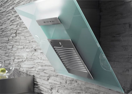 Наклонные модели — еще один вариант для небольшой кухни. Они размещаются на стене, но при высокой производительности не требуют много места. Их особенностью считается пониженный уровень шума и управление при помощи пульта ДУ. Эта категория вытяжек отличается большим разнообразием размеров, дизайна, цветов.
