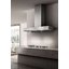 Угловые вытяжки — разновидность купольных. В соответствии со своим названием эти устройства крепятся над угловыми варочными поверхностями, удачно занимая свободное место в углу помещения.