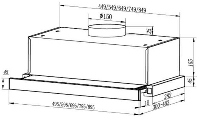 У многих встраиваемых моделей глубина может регулироваться, а рабочая всасывающая поверхность — увеличиваться благодаря выдвижному козырьку, но габариты корпуса такой вытяжки должны соответствовать размерам подвесного шкафа. Выбирать основные размеры вытяжки с соблюдением всех требований эффективности и безопасности работы следует также не в ущерб общему дизайну помещения.