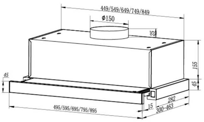 У многих встраиваемых моделей глубина может регулироваться, а рабочая всасывающая поверхность — увеличиваться благодаря выдвижному козырьку, но габариты корпуса такой вытяжки должны соответствовать размерам подвесного шкафа. Выбирать основные размеры вытяжки с соблюдением всех требований эффективности и безопасности работы следует также не в ущерб общему дизайну помещения.