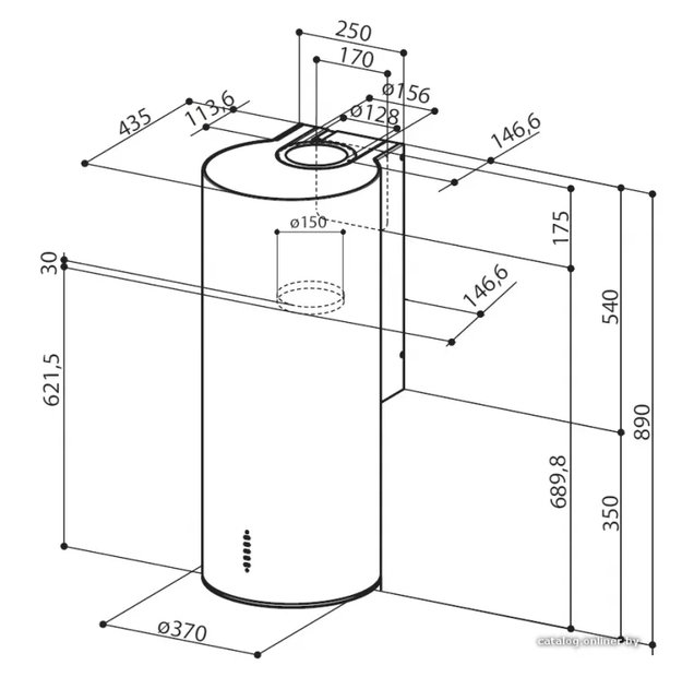 Для удобства пользователя следует выбирать вытяжку так, чтобы глубина даже самого большого купола не превышала глубину столешницы. У большинства современных купольных моделей глубина точно равна ширине, поскольку и стандартные варочные поверхности чаще всего имеют квадратную форму. Это значит, что вытяжка должна располагаться точно над поверхностью плиты, так, чтобы их оси совпадали. Стандартные размеры глубины таким образом могут составлять 30, 45, 50, 60, 80, 90, 100, 120 см.