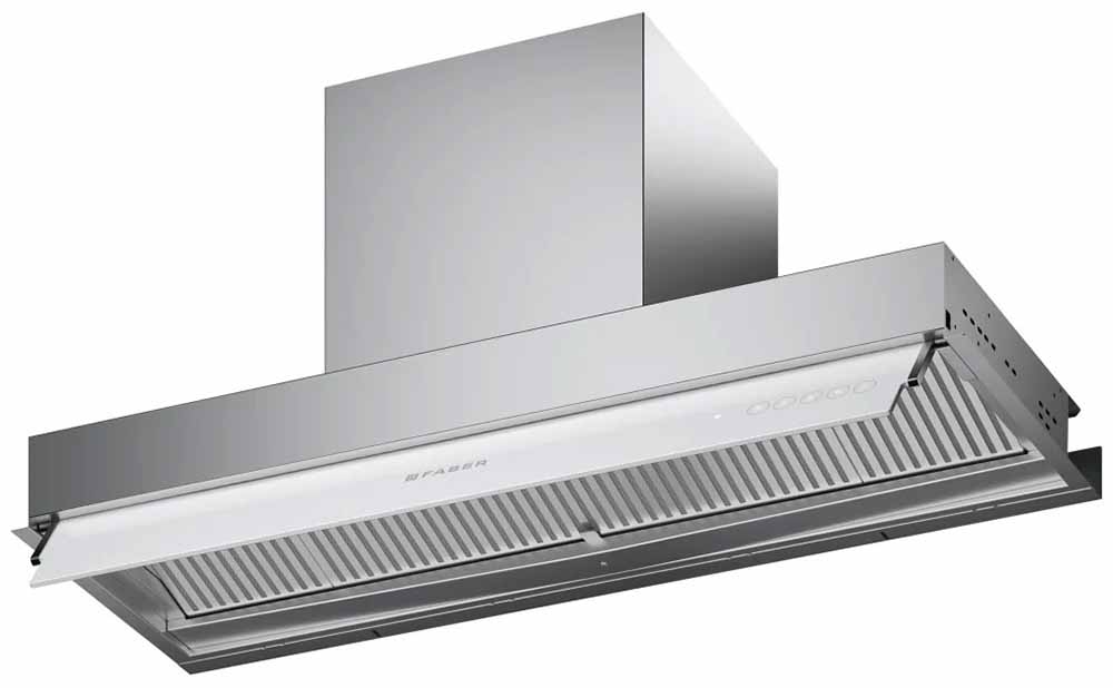 Вытяжка, встраиваемая в потолок, часто устанавливается над кухонным островом в просторной кухне и отличается достаточно высокой мощностью: она может работать как в режиме рециркуляции, так и в режиме отвода, так как воздуховод также скрыт в потолке. Вытяжки могут монтироваться в подвесной потолок либо устанавливаться в специальные многоярусные конструкции из гипсокартона непосредственно во время ремонта кухни. Для управления ими используется пульт ДУ.