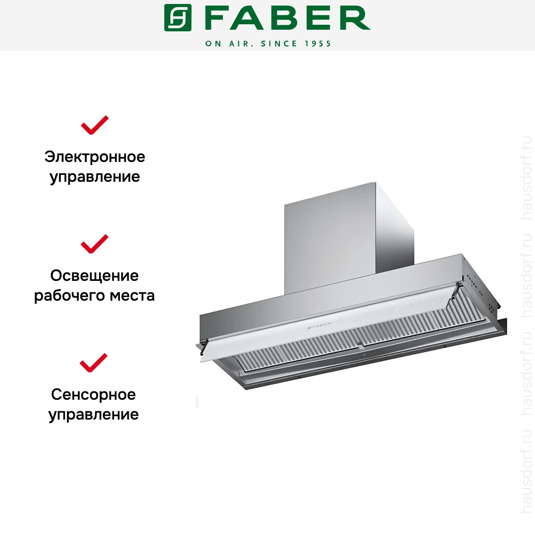Итальянская компания Faber завоевала мировую известность благодаря своим оригинальным и надежным вытяжкам. История бренда началась в 1955 году: инженер А. Галасси с партнерами основал компанию по производству изделий из пластика — самого модного в то время материала. Оригинальную вытяжку фирма представила в 1958 году — она получила название по наименованию пластмассы Plexiglas.