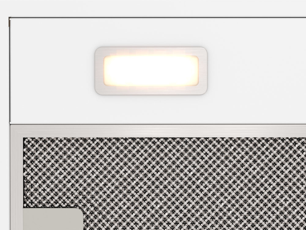 Встроенное освещение — функция, которая присутствует практически во всех современных вытяжках. Центрального освещения часто недостаточно для хорошего обзора рабочей зоны, особенно если над ней установлен подвесной шкаф. Интегрированные в вытяжку лампы позволяют готовить с комфортом, не напрягая зрение, их можно включать независимо от использования самой вытяжки.